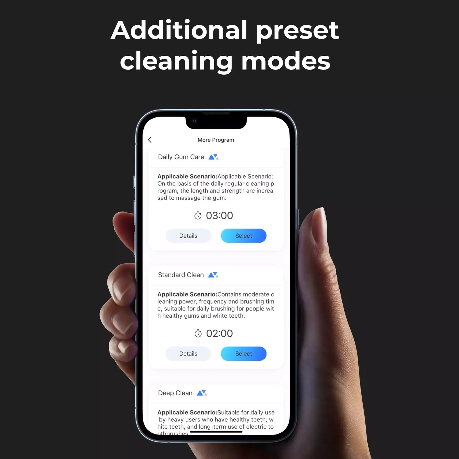 Smart App: additional preset cleaning modes