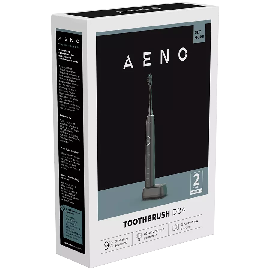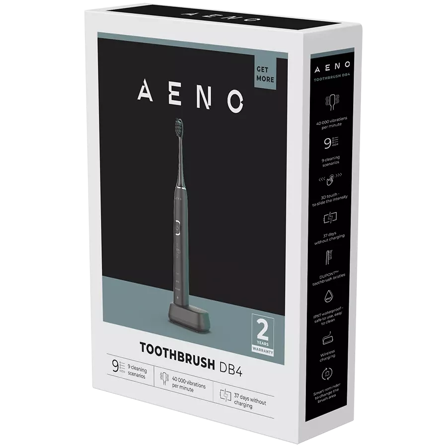 AENO Sonic Electric Toothbrush DB4 Black ADB0004 , 9 scenarios, with 3D touch, wireless charging, 46000rpm, 40 days without charging, IPX7 ADB0004