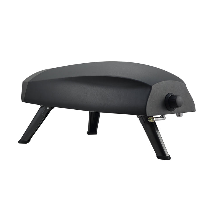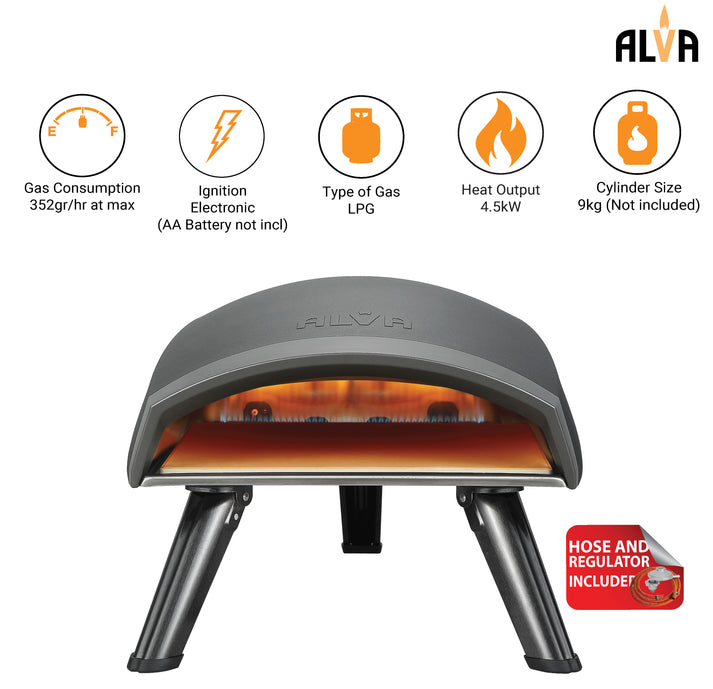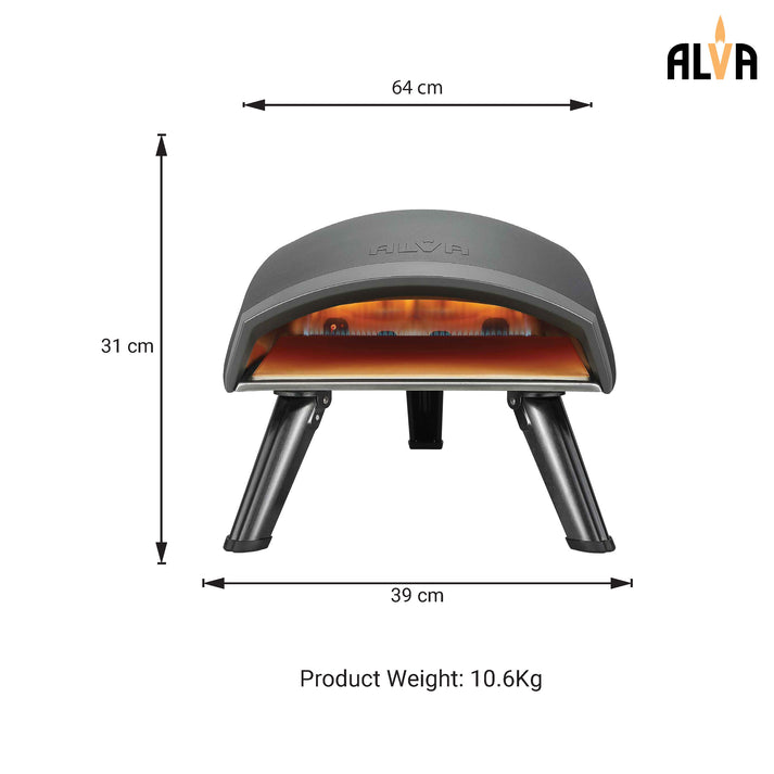 • A gas burner maintains in-oven temperatures without the need to keep stoking the fire like a wood-fired oven.