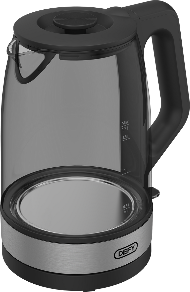 The Defy WK5300G Tinted 1.7L Glass Kettle is a stylish and functional kitchen appliance designed to bring elegance and efficiency to your daily routine. It features a sleek tinted glass body that not only adds a modern aesthetic to your kitchen but also allows you to easily monitor the water level. The kettle has a generous 1.7-liter capacity, making it ideal for boiling water for tea, coffee, or cooking.