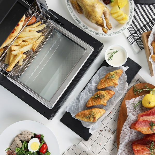The Kuvings Air Fryer Oven is designed as an All-in-One – oven, airfryer, dehydrator, rotisserie and toaster. The large glass front panel gives you a full unobstructed view. The touch-control panel and stainless steel casing with a 14.5L capacity makes it a high-end multi-cooker with exceptional quality finishes – built to last! Enjoy healthier food with up to 80% less fat made in half the time of a conventional oven. Choose from either manual programming or automatic functions for all of your favourite foods. The Kuvings Air Fryer Oven will become an essential part of your kitchen.