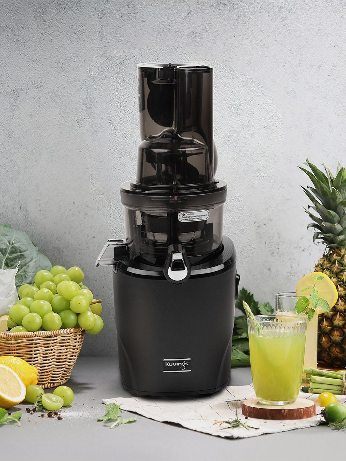 Love to juice carrots or celery? Our latest model, the REVO830, has an additional 45mm feeding chute that easily feeds whole carrots, celery & cucumber (it’s also great for pineapple strips, kale, and spinach) through the chute, whilst still housing the standard 82 mm flip gate feeding chute for whole ingredients. This is by far Kuvings’s most innovative design to date, and it extracts more juice with drier than dry pulp. The new commercial-grade screw (Auger) has a self-cutting top (new design). When carrots, celery and cucumber are fed into the chute, the screw chops the ingredients before pressing! The Kuvings REVO830 comes standard with a smoothie and a sorbet strainer.