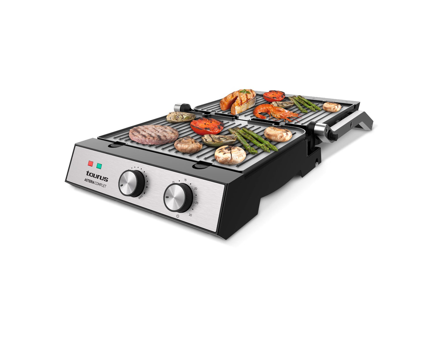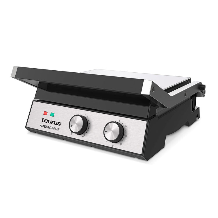 Grill your meal to perfection with the Asteria Complete from Taurus. The Asteria Complete has a 30 minute timer and is temperature controlled. It has an adjustable cooking height selector ensuring you can cook various size foods with ease. Cleaning is completely painless with the removable non-stick coated grilling plates.