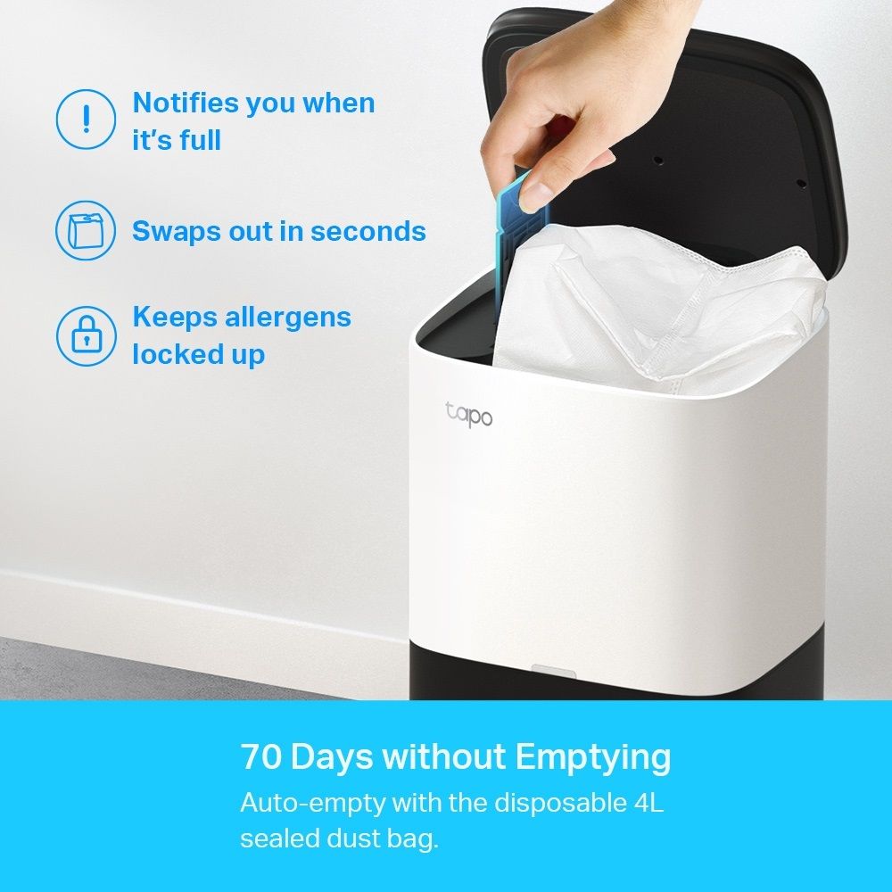 - Auto-Empty with 4L Large Dust Bag: Automatically empties the dustbin after cleaning to keep your hands free for up to 70 days. (1)