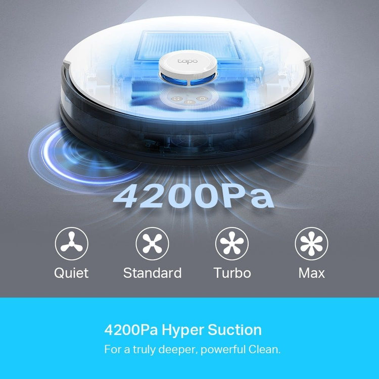 - With industry-leading suction power up to 4200Pa, the TAPO Robot Vacuum is designed for a deeper clean that sweeps away debris sandwiched between gaps and dust hidden in carpets, leaving nothing but a spotless floor.