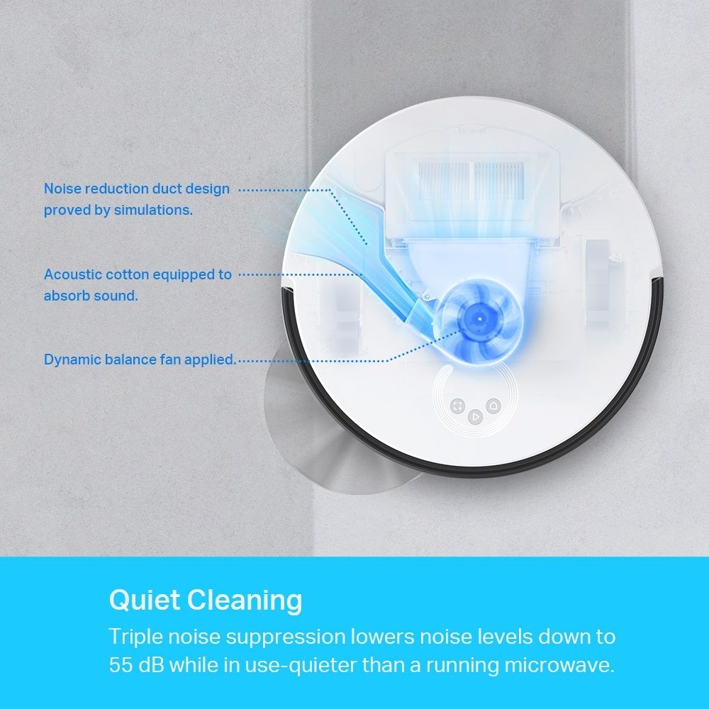 - Triple noise suppression lowers noise levels down to 55db while in use - quieter than a running microwave. TAPO cleans your home without disturbing you or your pets (2).