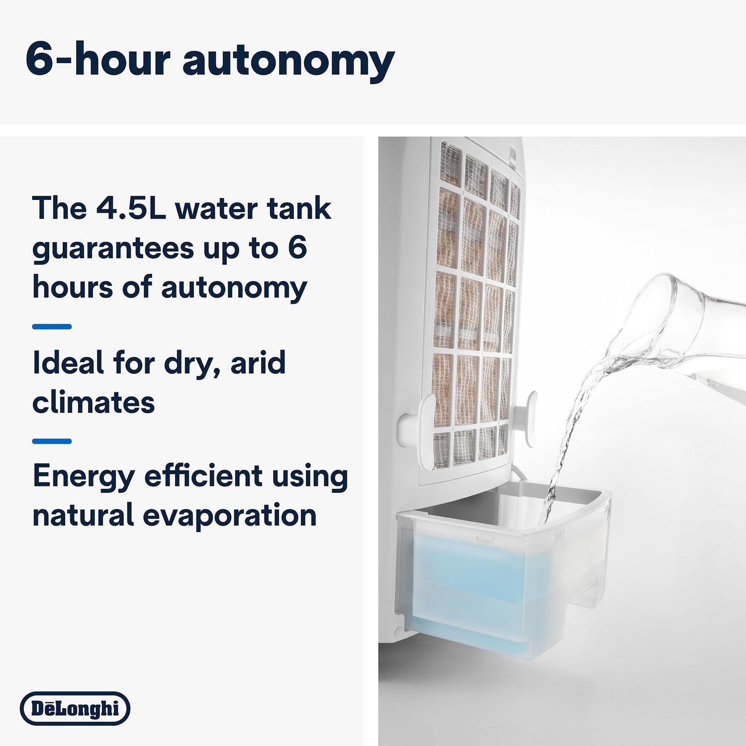 6-hour autonomy: The 4.5 l water tank guarantees up to 6 hours of autonomy, for extended use.