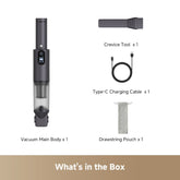The Dreame Car Vacuum E10 is a lightweight and compact car vacuum designed for simple interior cleaning. It features a powerful 100,000 RPM digital motor, generating 14,000Pa of suction, capable of picking up "bean-size rocks.