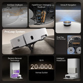 - Powerful Suction and Efficient Mopping: It delivers up to 20,000 Pa of suction power to effectively remove dirt, dust, and pet hair. The mop function utilizes hot water (up to 80°C) for deep cleaning and self-dries to prevent odours.