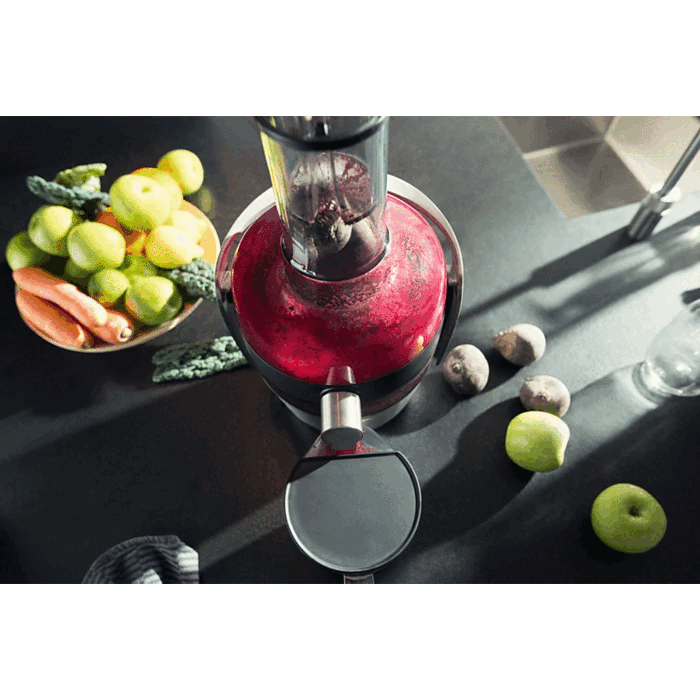Save time and start juicing faster. You no longer need to cut up most fruit and vegetables to fit this juice machine. Just pop it all into the 80mm XXL feeding tube, and enjoy a boost of nutrition every day.