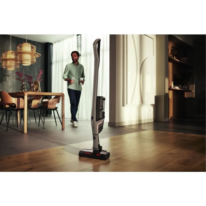Miele's TriFlex HX2 Performance Cordless Stick Vacuum Cleaner tackles deep dirt with ease, keeping allergens at bay with a HEPA filter. Plus, it's a breeze to empty with Twist2open. This vacuum isn't just about convenience, it's got an extra-wide brush for quicker cleaning and adapts to different floors. And when you're done, simply hang it on the wall. Vacuuming just got a whole lot easier!