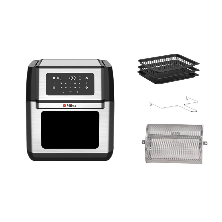 Introducing our revolutionary Air Fryer Oven with Rotisserie a kitchen marvel that combines the latest in cooking technology with versatility to elevate your culinary experience. This sleek appliance not only air fries your favorite dishes with 85% less fat than traditional deep frying, but also comes equipped with a built-in rotisserie function for perfect roasts and poultry every time. The intuitive control panel lets you effortlessly customize temperature and cooking time, allowing you to achieve the ideal results for a wide range of recipes.