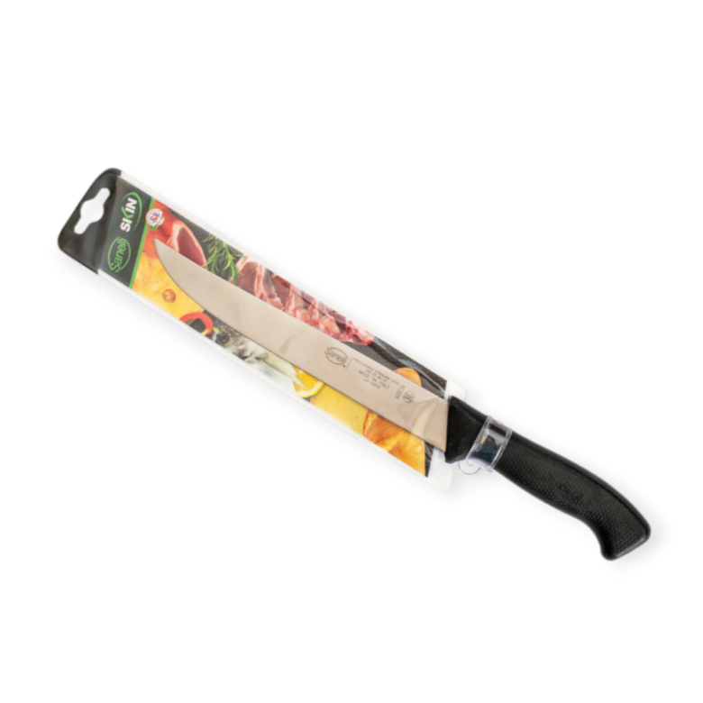 The new Skin line combines the proven high quality of Sanelli’s blades with a brand-new handle. Using an innovative technology that Sanelli calls “texturization”, the surface of the Skin handle differs from any other and offers a comfortable and safe grip, cancelling any feeling of rigidity. The ergonomic shape is a guarantee of safety. The used materials comply to the strict hygiene and food contact regulations100% supply chain Italy – using the best quality materials which comply to strict hygiene and food contact regulations.