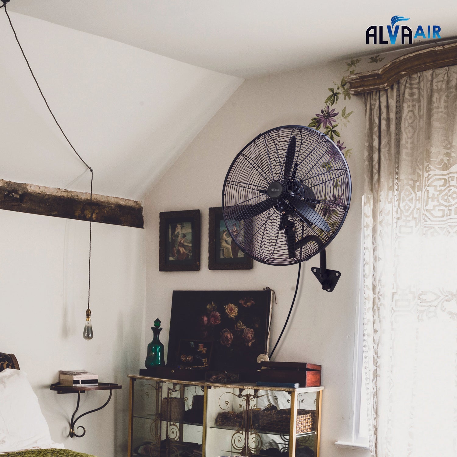 • We make this enormous (50cm diameter grill), stylish industrial matte black wall fan for users that need more airflow and power – but mounted on the wall.