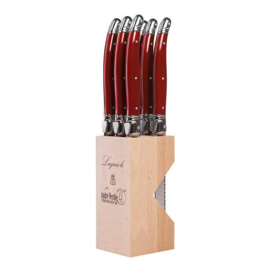 Andre Verdier Steak Knife Set with Stand, 6-Piece Laguiole Cherry