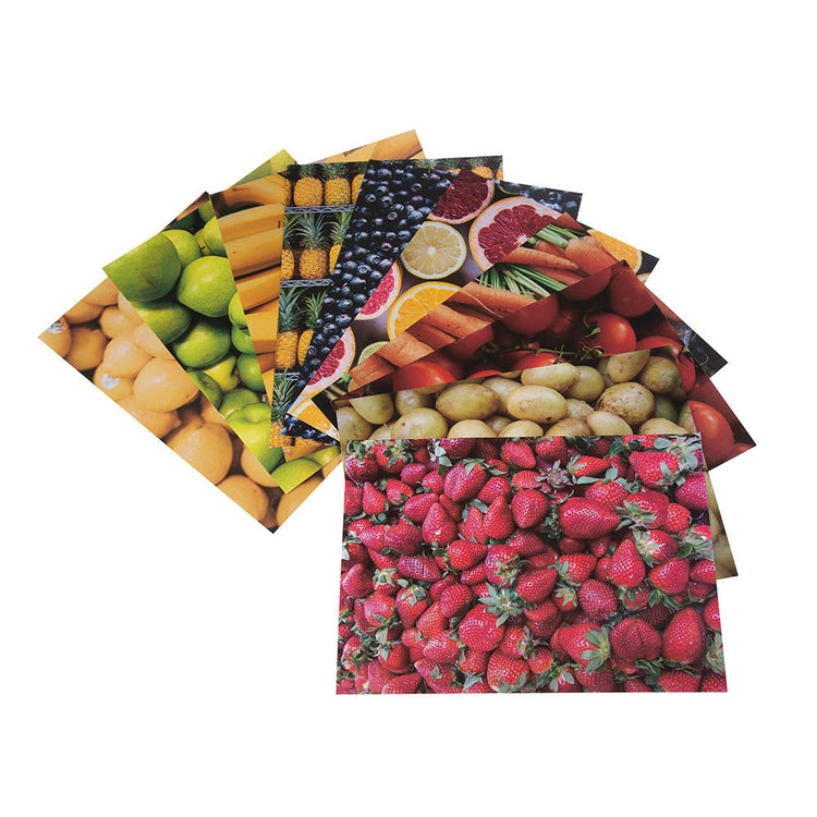 Themed arts and crafts paper is always handy! This fruit and vegetable themed paper is great for school projects and makes a fine addition for arts and crafts at home or in the classroom.