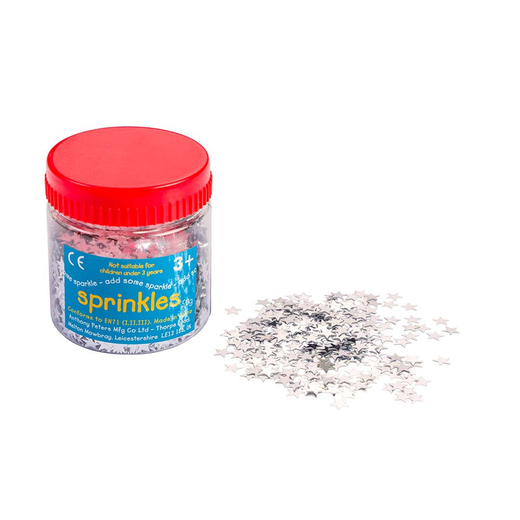 - 1 x 50g Tub Silver Foil Stars