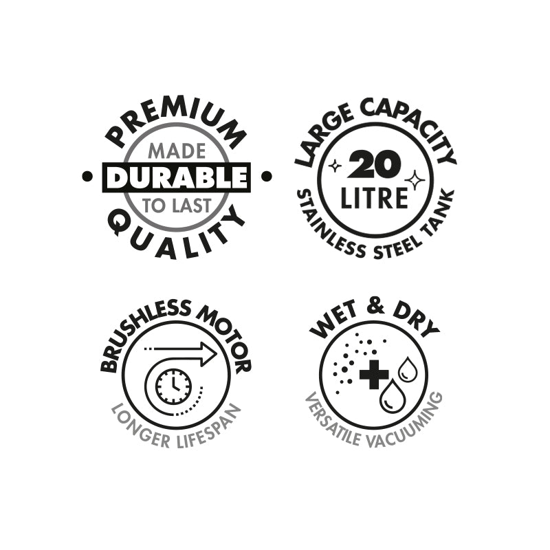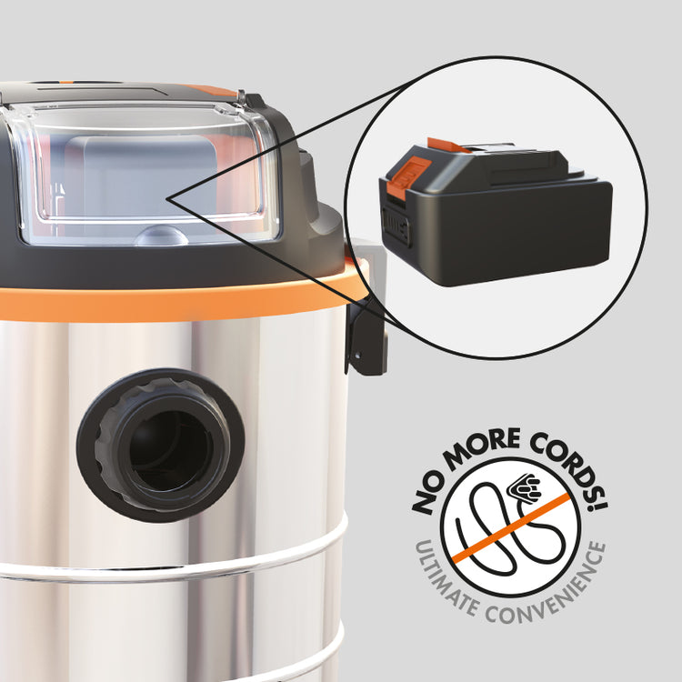 The versatile vacuum cleaner, designed with the ability to quickly convert from a dry floor vacuum to an efficient spill-slurper for ultimate home cleaning convenience. The Bennett Read Titan Cordless vacuum cleaner is equipped with a powerful 18V, 4Ah Lithium-ion battery & state-of-the-art brushless motor that allows for up to 40 minutes* of run-time per charge! With a large, robust stainless steel 20L tank that is able to tackle almost any cleaning job, yet lightweight & compact enough for fast, effortless use & easy storage. Plus an impressive quick-charger that charges the battery from flat to full in only 2 hours!** Great for homes, cars, boats, caravans, workshops, handyman jobs & more!