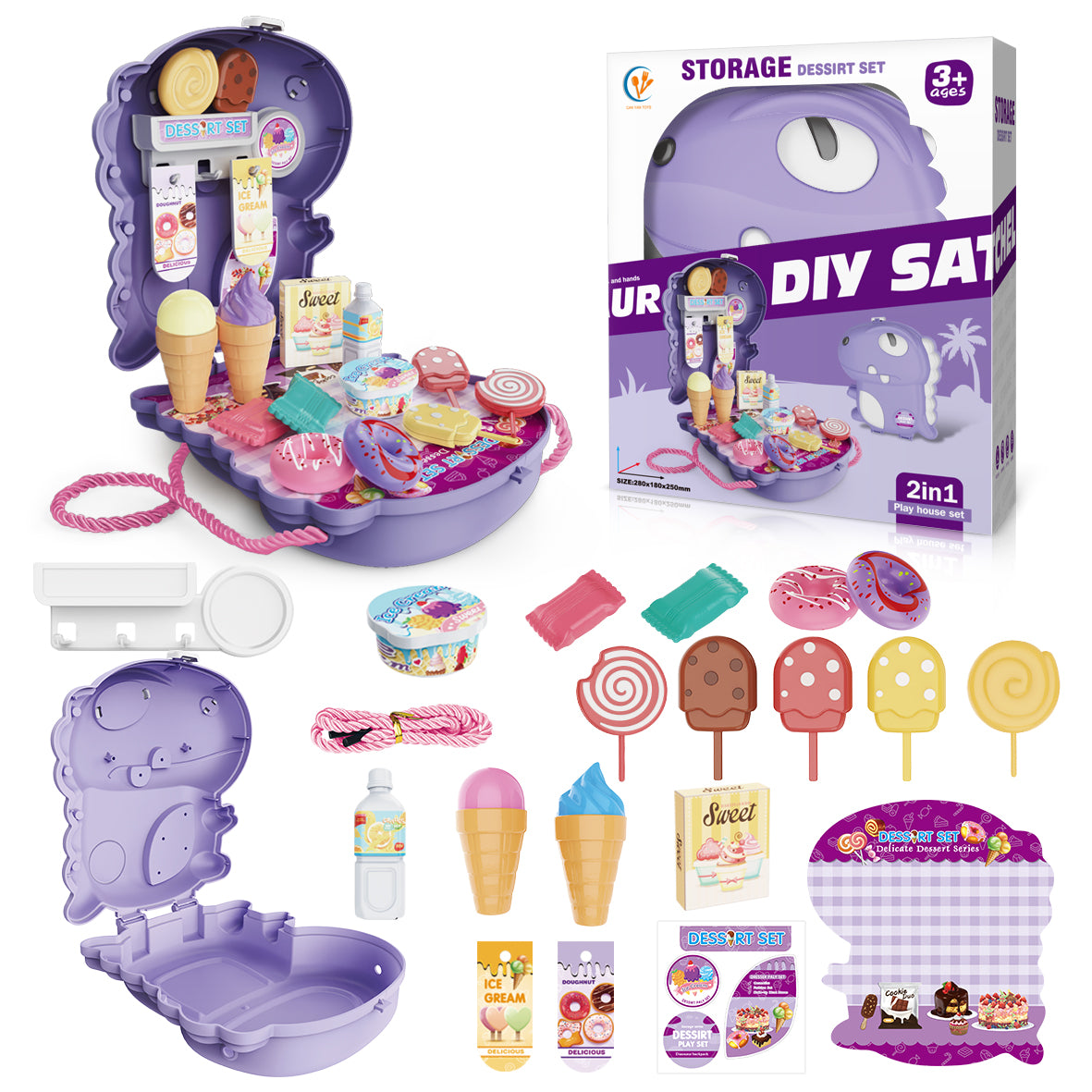 Delight in fun and creativity with the Cogo 2-in-1 Dessert Food Set & Dinosaur Backpack! This adorable purple dinosaur backpack opens up to reveal 21 sweet accessories, including ice cream, candy, and other dessert-themed items. Perfect for imaginative role-play, children can carry their treats in the dinosaur backpack while engaging in fun pretend play. This set helps develop social skills, creativity, and an understanding of sharing and playtime responsibilities.