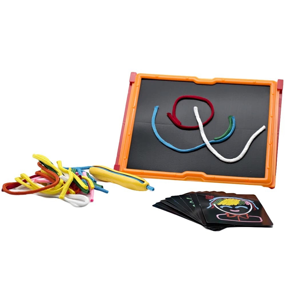 Squiggle Velcro Lace Drawing Board (58pcs) Set - White Box - This fun Velcro board holds laces in place allowing children to create their own masterpieces while coordinating the threading pen.