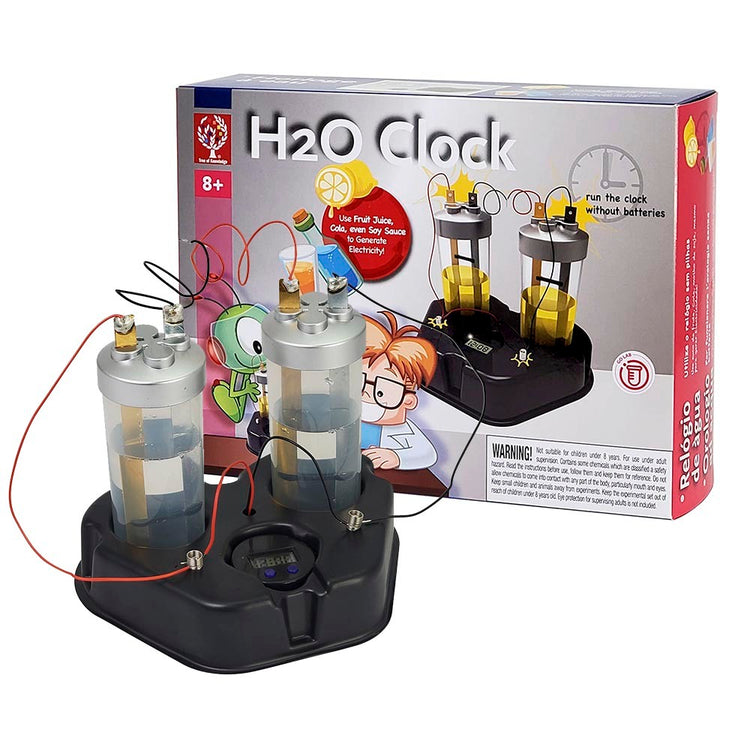 Use Fruit Juice, Cola, even Soy Sauce to generate electricity - Watch how the clock runs without batteries.