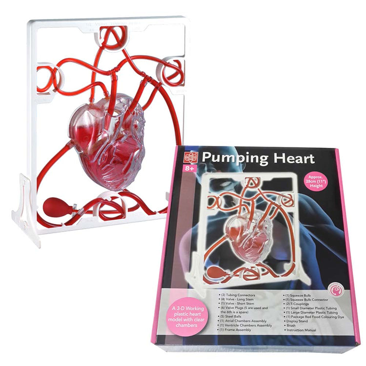 The squeeze bulb pumps simulated blood through clear heart chambers imitating the way in which our hearts function - a hands-on approach to learning our biology.