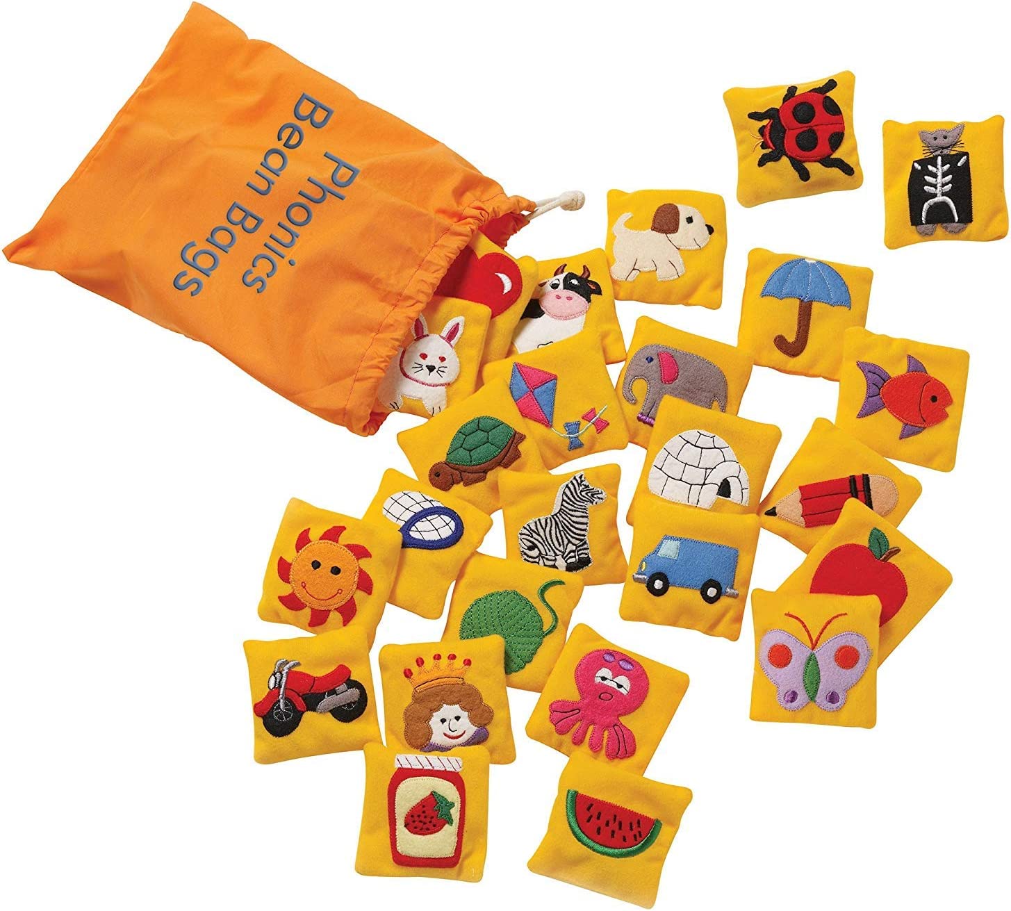 These colourful 7cm embroidered bean bags are a great tactile way to reinforce letters and sounds. Each bean bag features an appealing picture representing the letters A-Z, with special double-sided bean bags for short and long vowel sounds, and the hard and soft sounds of c and g.