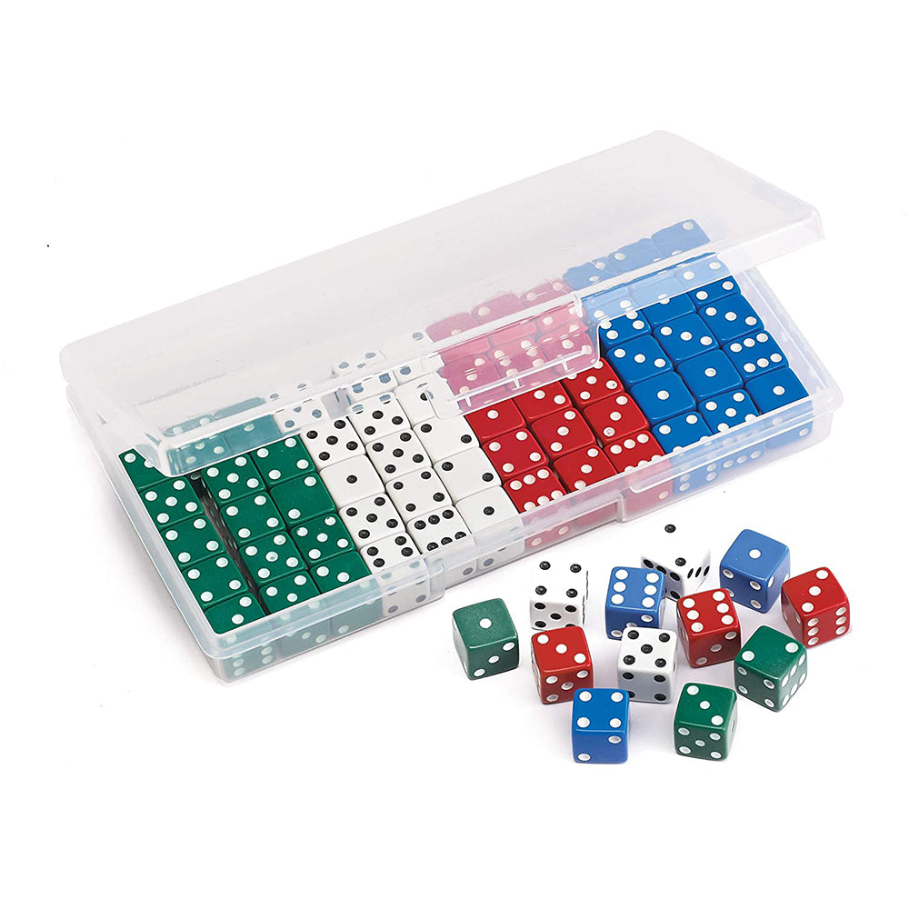 This basic dot dice set in 4 colours is great for teaching probability and using for games.