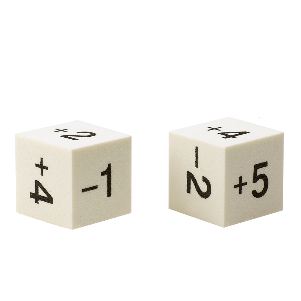 Features 1 through 5 with positive and negative signs. Ideal for work with integers.