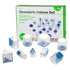 These blue green geometric solids are used to inspire the learning of geometric relationships between area, volume, shape, form and size.
