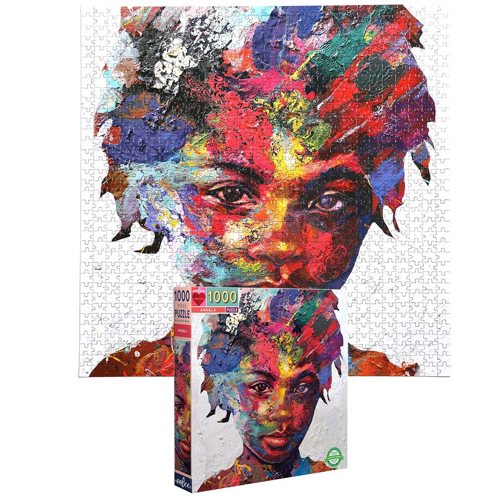 Angela is a beautiful and visually arresting image from our 1000-piece puzzle collection. The artist uses thickly layered paint on a canvas made of found objects and scrap metal to create poignant portraits of people he photographs on the streets of London. This challenging puzzle features the work of the talented artist Matt Small, who describes his subjects as ๅœŸoung, dispossessed people, individuals who feel undervalued, who do not have a voice and who are often overlooked.