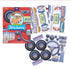 Four giant sheets of reusable stickers include all the necessities - a steering wheel, license plate, radio, wheels, and more.
