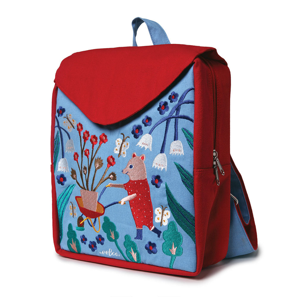 A durable and water-resistant backpack in an adorable size. With wide adjustable straps and a roomy main compartment, this backpack is perfect for children and teens on the go. Unique decorative garden embroidery on vibrant two-tone cotton makes this backpack stand out in crowd.
