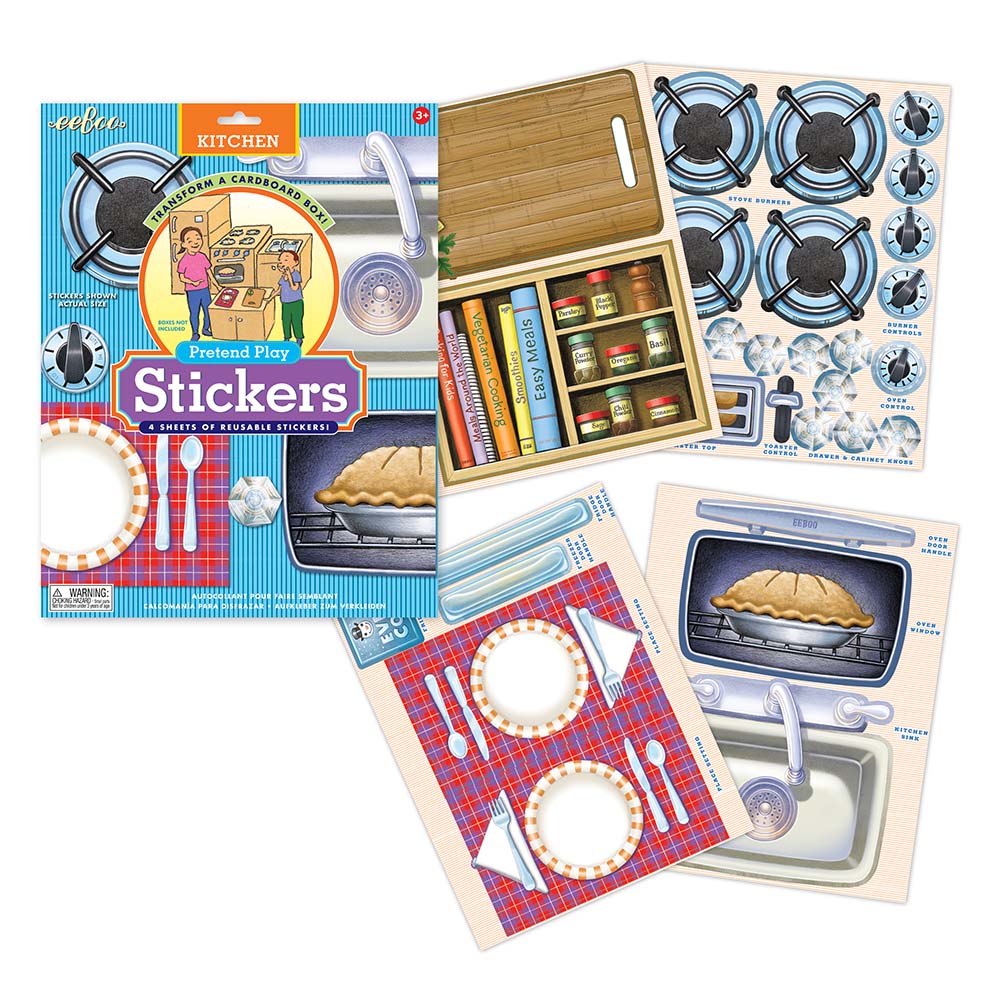 Recycle your own cardboard box into a child's very own Pretend Play Kitchen and jump start imaginative play with Pretend Play Stickers!