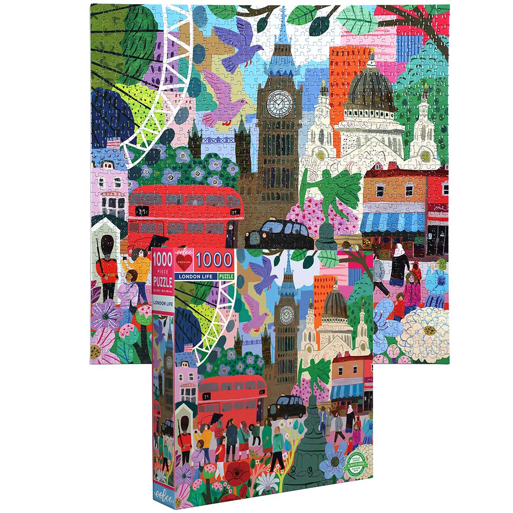 The London Life 1000-piece puzzle embodies all the daily hustle and bustle of this worldly city. Featured in this colourful and lively illustration are the famous icons and architecture that make this city on the Thames such a destination. London Life will also walk you through the gardens and marketplaces to meet the diversity of the locals and their neighborhood environments.