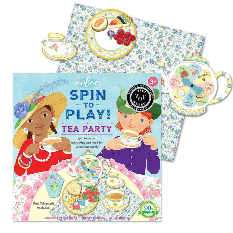 Spread the real fabric tablecloth, ready the teapot spinner, china and all the teatime treats! Time for a delicious game of Tea Party!