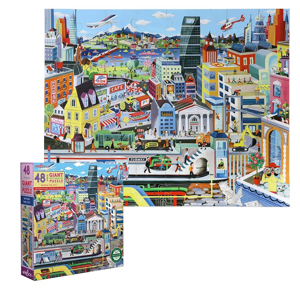 Underground and overhead, this puzzle illustrates the life and infrastructure of a large bustling city. Children will enjoy finding details in every corner and on every piece of this massive floor puzzle.
