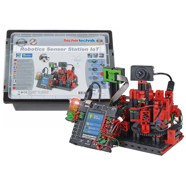 The product Robotics Sensor Station IoT is also available as a complete set. Also included in this complete set (Item No.: 544937) are the ROBOTICS TXT Controller, the ROBO Pro software and a power supply unit (9V, 2.5A).