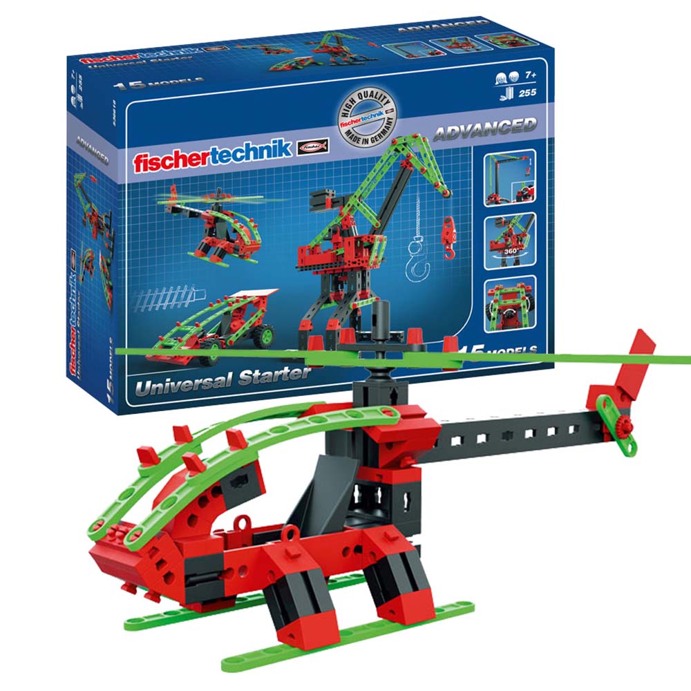 Models such as the crane with cable winch and worm gear, racing car with steering and teeter-totter with 4-bar linkage teach children a basic understanding for technology.