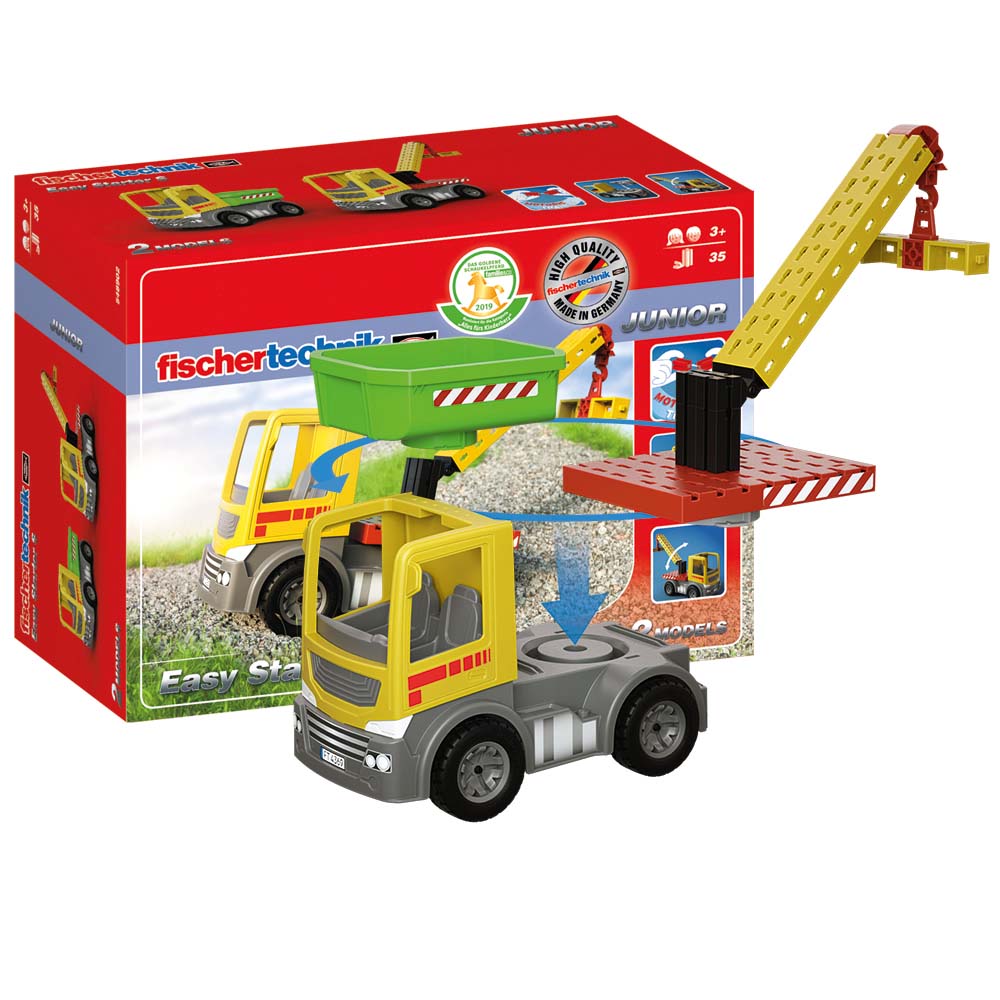 These beginner building sets can be used to create different truck models including a dumper. Alternatively, add the fischertechnik building plate to the driver痴 cab.