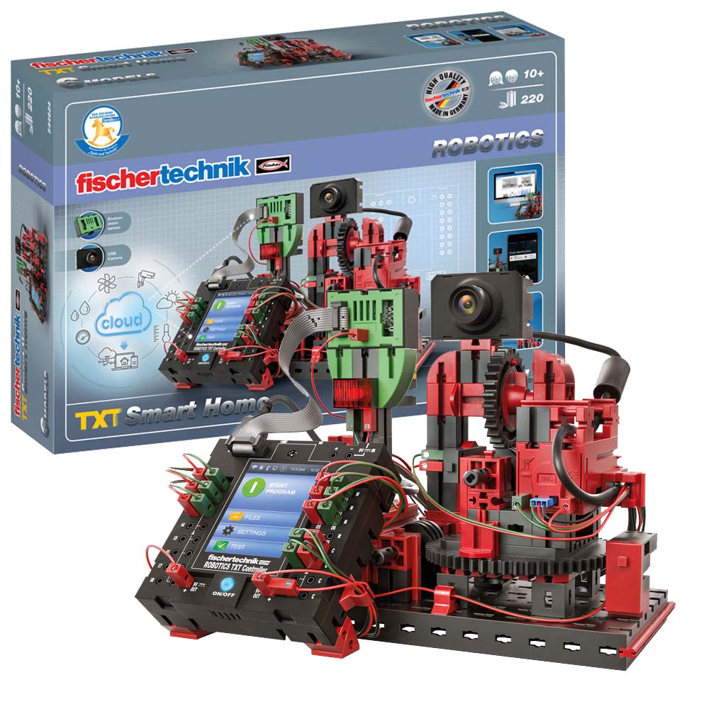 Smart Home, the latest trend, that can now be experienced through play, with the Fischer Technik product Robotics TXT Smart Home. The stationary sensor station with a moving camera, new environmental sensor and other sensors, enables the measurement of air temperature, humidity, air pressure, air quality, volume and brightness.