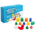 Explore the relationships between 2D 3D goesolid shapes with this advanced set of 12 folding geometric solids including cube, cylinder, cone, triangular prism, square pyramid, triangular pyramid, rectangular pyramid, pentagonal pyramid, hexagonal pyramid, rectangular prism, pentagonal prism, and hexagonal prism.