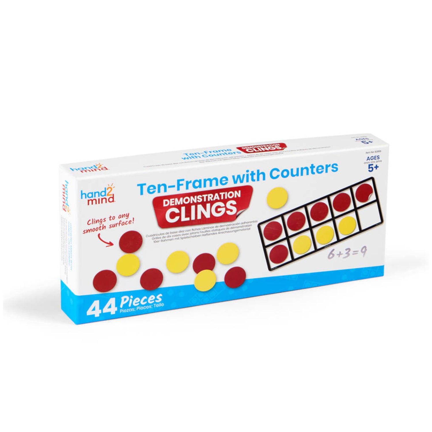 No more magnets! Developed for the modern classroom, Ten-Frame with Counters Demonstration Clings stick to almost any smooth flat surface and can be used over and over again to show number sense and computation. Ideal for teaching number sense and computation on the board while students model them at their desks.