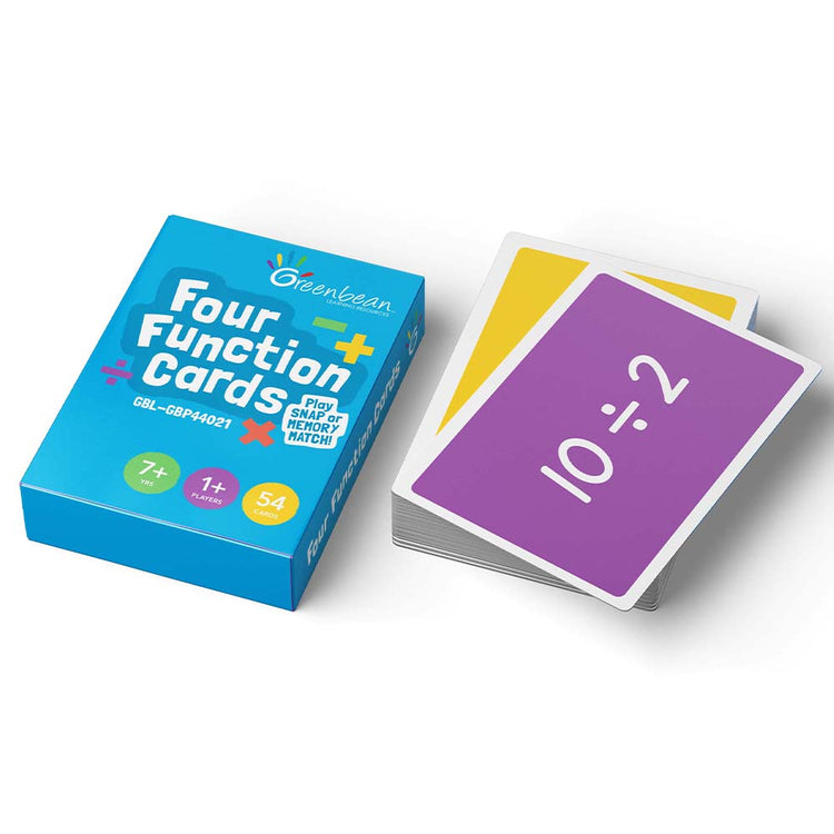 Feel superior in an essential school subject with Four Function Snap. This is a brilliant way to enjoy two family favourites, Snap and Pairs, using addition, subtraction, division and multiplication concepts. For example, playing Snap with this fantastic deck of cards, you would be trying to snap cards that equal the same value like 10 and 5 plus 2 or 25 minus 5 and 15 plus 5.