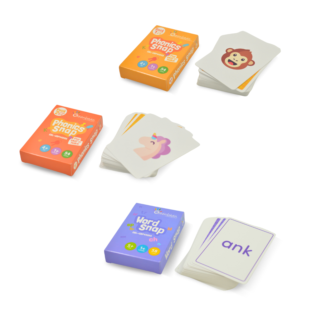 - 3 Snap card decks (Word Snap, Phonics Snap A - M, Phonics Snap N - Z)