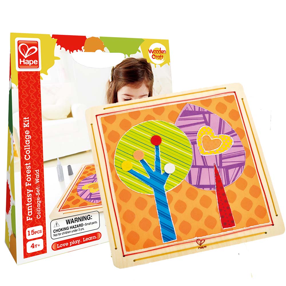 Plant a fantasy forest with this all-in-one collage kit. Arrange the fabric pieces in place before you start to glue.