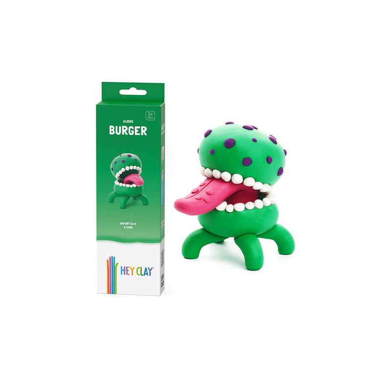 Hey Clay: Modelling Air-Dry Clay with Fun Interactive App - Burger, 3 Cans: Alien Series