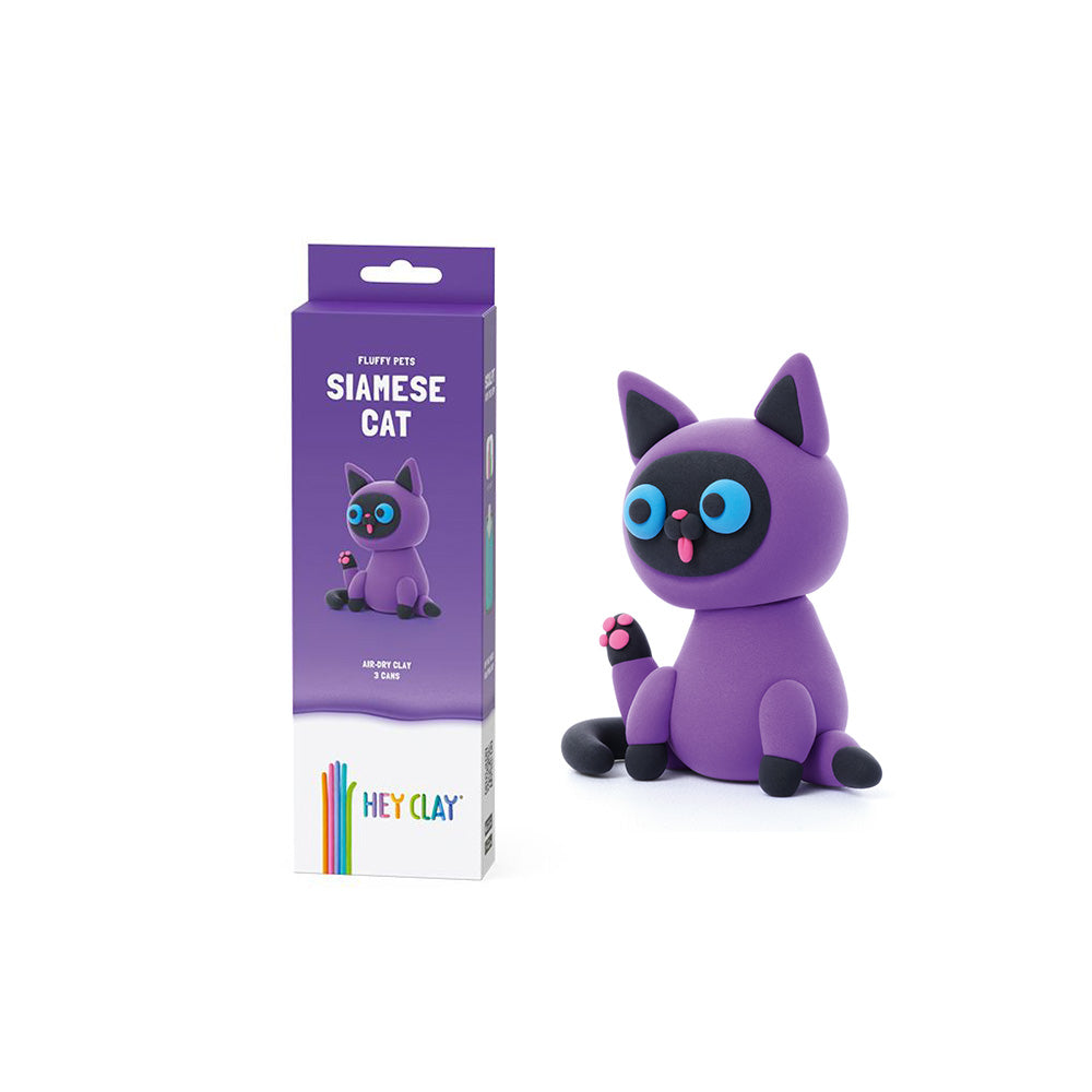 Hey Clay: Modelling Air-Dry Clay with Interactive App - Siamese Cat, 3 Cans: Fluffy Pets Series