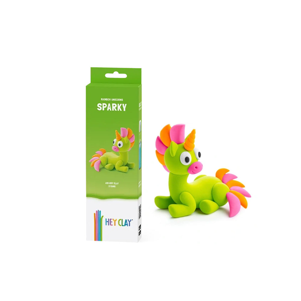Hey Clay: Modelling Air-Dry Clay with Fun Interactive App - Sparky, 3 Cans:Rainbow Unicorns Series