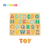 This wooden alphabet puzzle features chunky, easy-to-hold pieces shaped like the letters A to Z. Each letter is brightly coloured and decorated with playful patterns, capturing young children's attention. Some letters even have delightful illustrations beside them - like an apple for ""A"" and a cat for ""C""- to help kids connect letters with words. The puzzle board has individual slots for each letter, promoting letter recognition, sequencing, and early literacy skills. This engaging toy supports the development of fine motor skills, hand-eye coordination, and fosters an early love of reading as children match each letter to its designated spot.